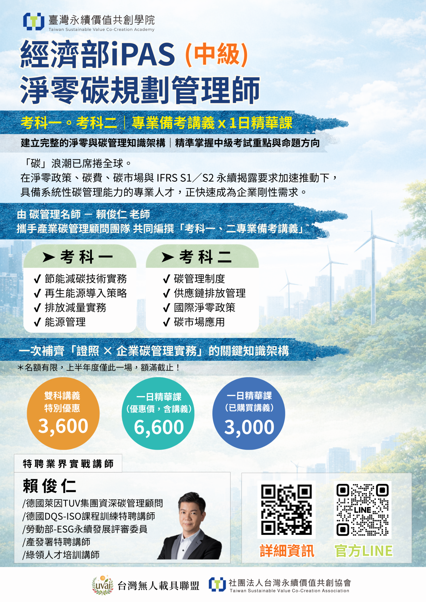 經濟部iPAS中級淨零碳規劃管理師|專業備考講義 × 1日精華課